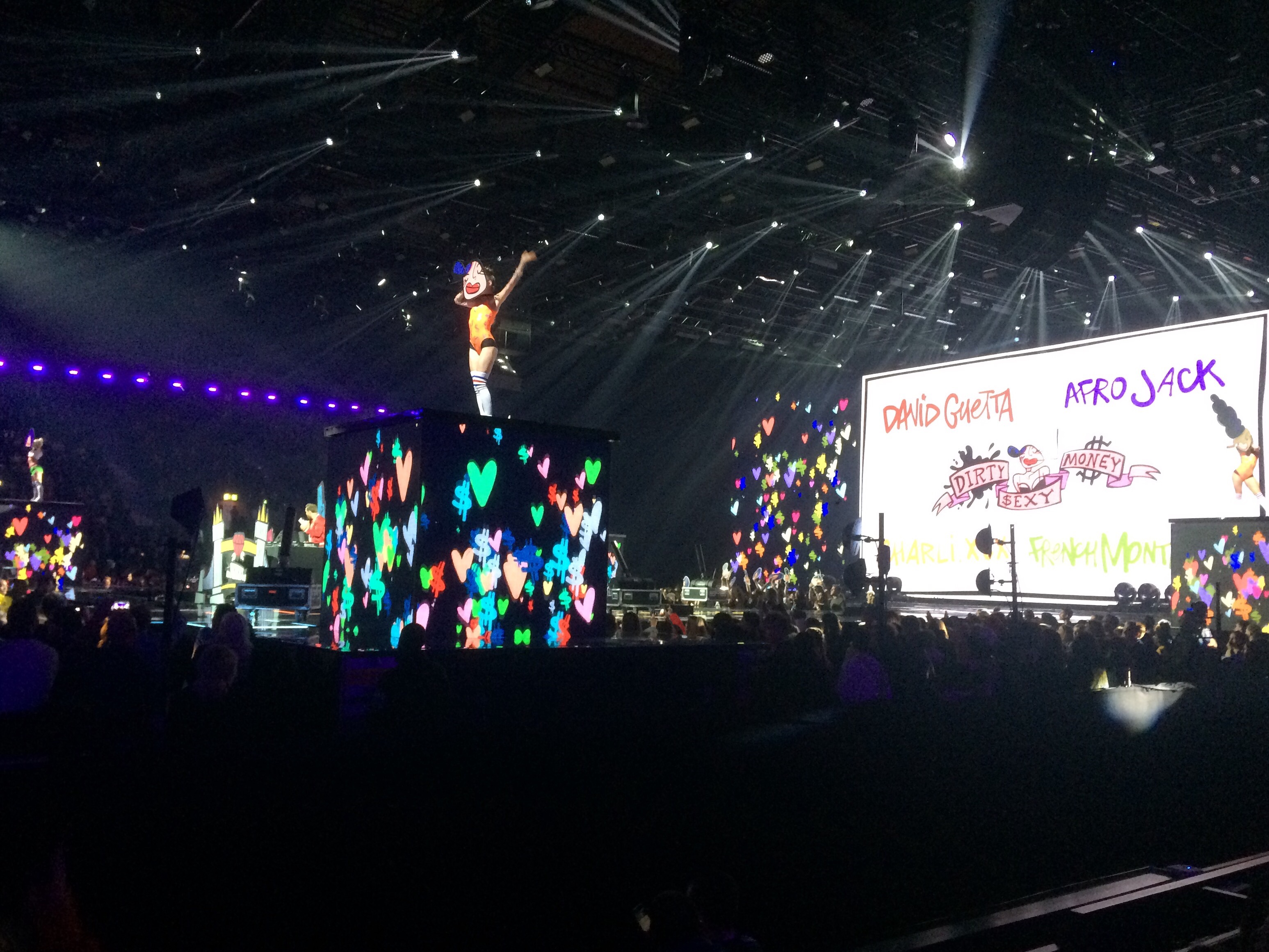 The EMA night drew to a close with an all-star finale as Mega DJ David Guetta took control of the stage with the first live performance of Dirty Sexy Money, alongside Charli XCX and French Montana. On theme, fireworks and green dollar bill cannons illustrated the otherwise trivial words. Even the cartoon-like set matched the lyric video visuals to a tee – a brand was born.