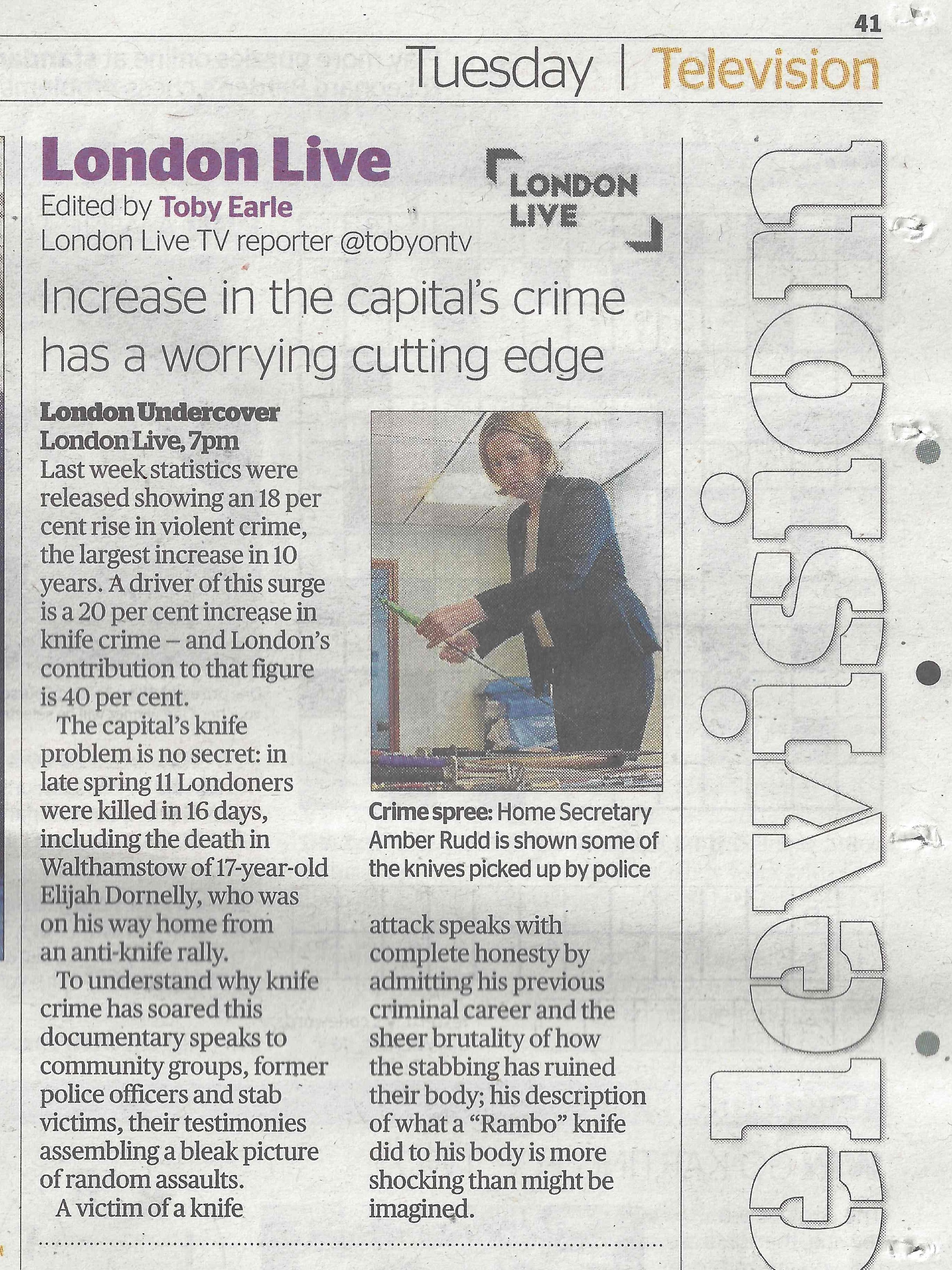 London Evening Standard Tuesday 25th July 2017 Joseph Aspinall July 25, 2017 • 2729 × 3640 • London360: The Knife Crime Special